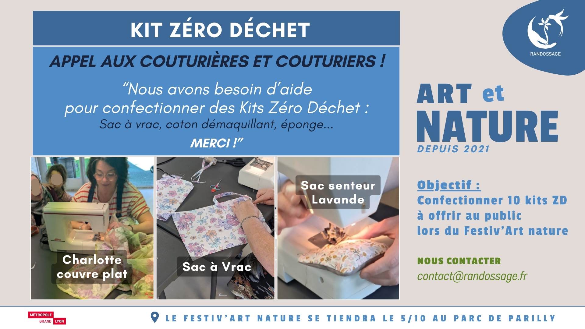 Pour proposer votre aide ou rejoindre les ateliers couture, contactez Corinne contact@randossage.fr