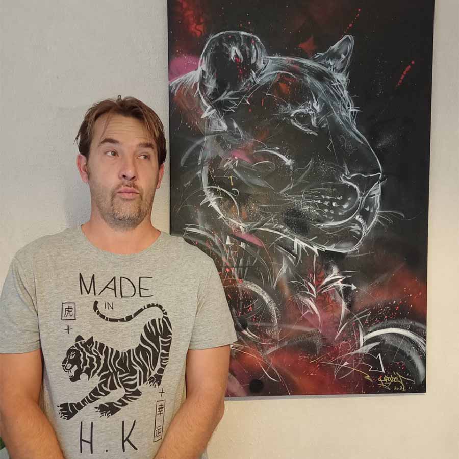 Autodidacte en dessin depuis tout jeune, je me suis mis à la peinture en 2013 car accidenté (tétraplégique) depuis mars 1999 le sport de haut niveau mon fait récupérer une dextérité et concentration que j’applique aujourd’hui en peinture à l’acrylique.